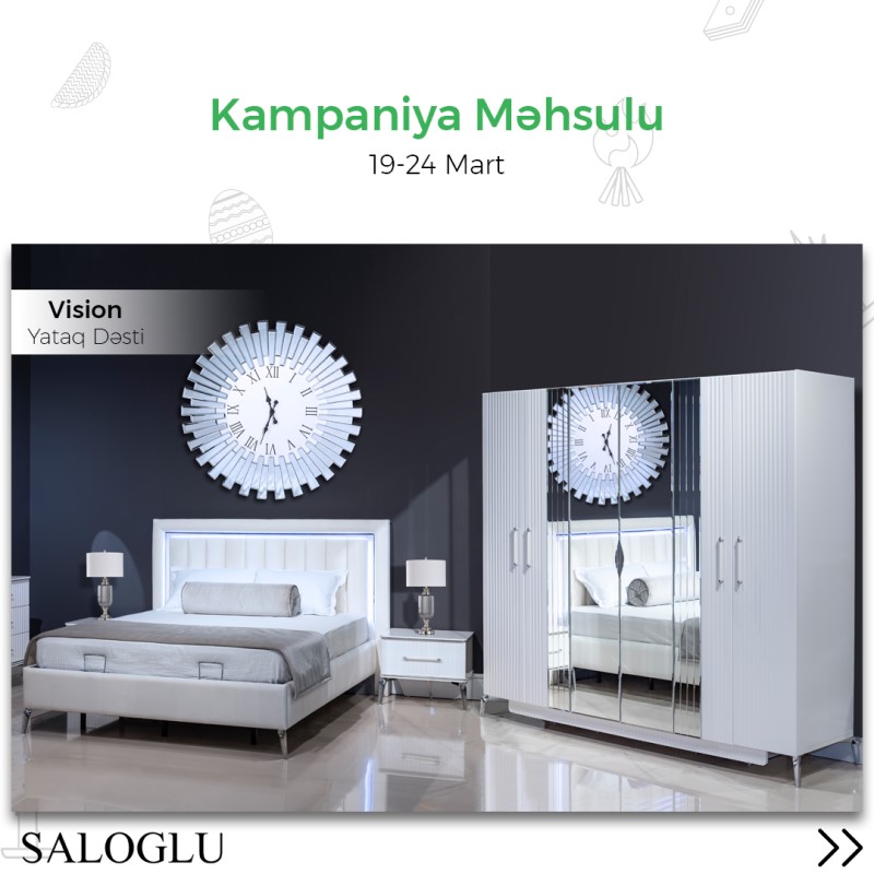 "Daim inkişafda olan xidmət şəbəkəmiz və son texnoloji avadanlıqlarla təchiz edilmiş fabriklərimizlə alıcılarımızın qəlbində xüsusi yer tutmuşuq. Bu Novruzda hər kəsi sevindirəcək bahar kampaniyamıza start verdik. Martın 19-undan 25-nə dək çox bəyənilən və satılan yataq qonaq mebellərimizə mövcud 30 % dən əlavə 15% də endirim etdik.