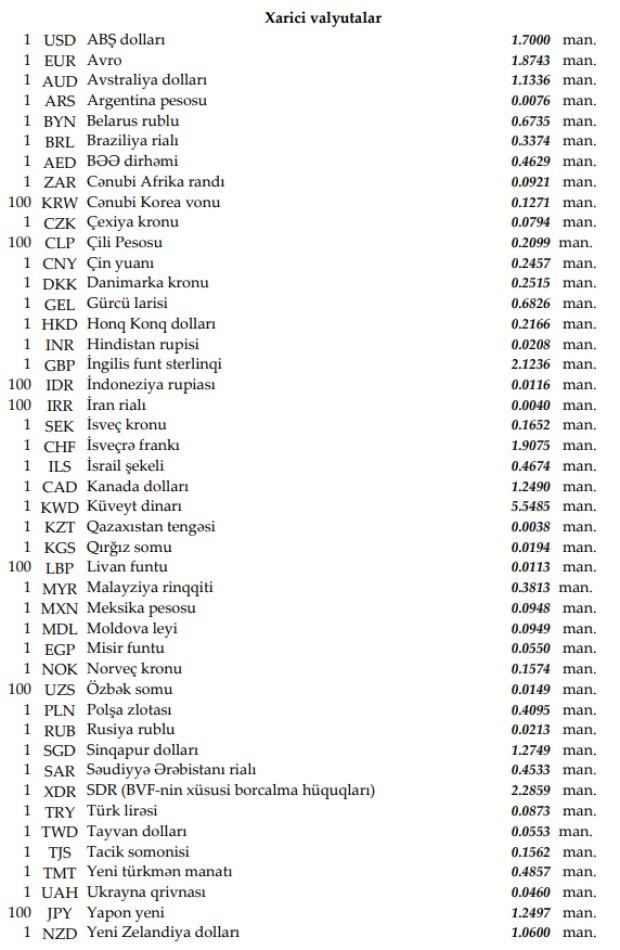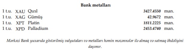 Rəsmi məzənnələr açıqlandı