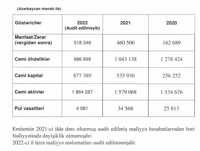 Buraxılış üzrə aderrayter "Unicapital İnvestisiya Şirkəti" ASC-dir.