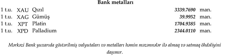 Rəsmi məzənnələr açıqlandı