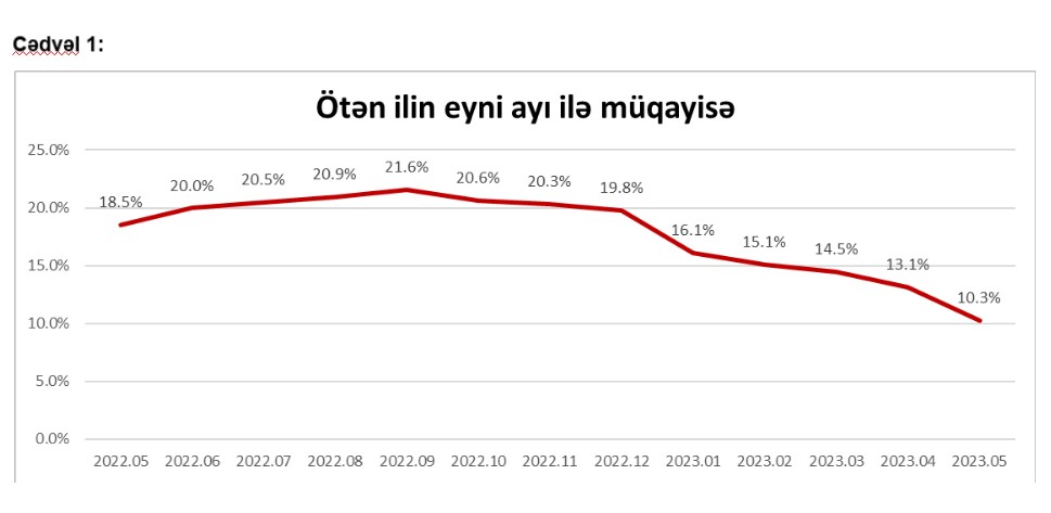 Belə ki, tez köhnələn qida məhsullarının qiymətində keçən ilin may ayına nisbətən 11.7% artım, quru, dondurulmuş qida məhsullarının, şirniyyat və spirtsiz içkilərin qiymətində 10.2% artım, spirtli içkilər və tütün məmulatlarının qiymətində 6.8%, gigiyena və təmizlik vasitələrinin qiymətində isə 13.6% artım izlənilib.
