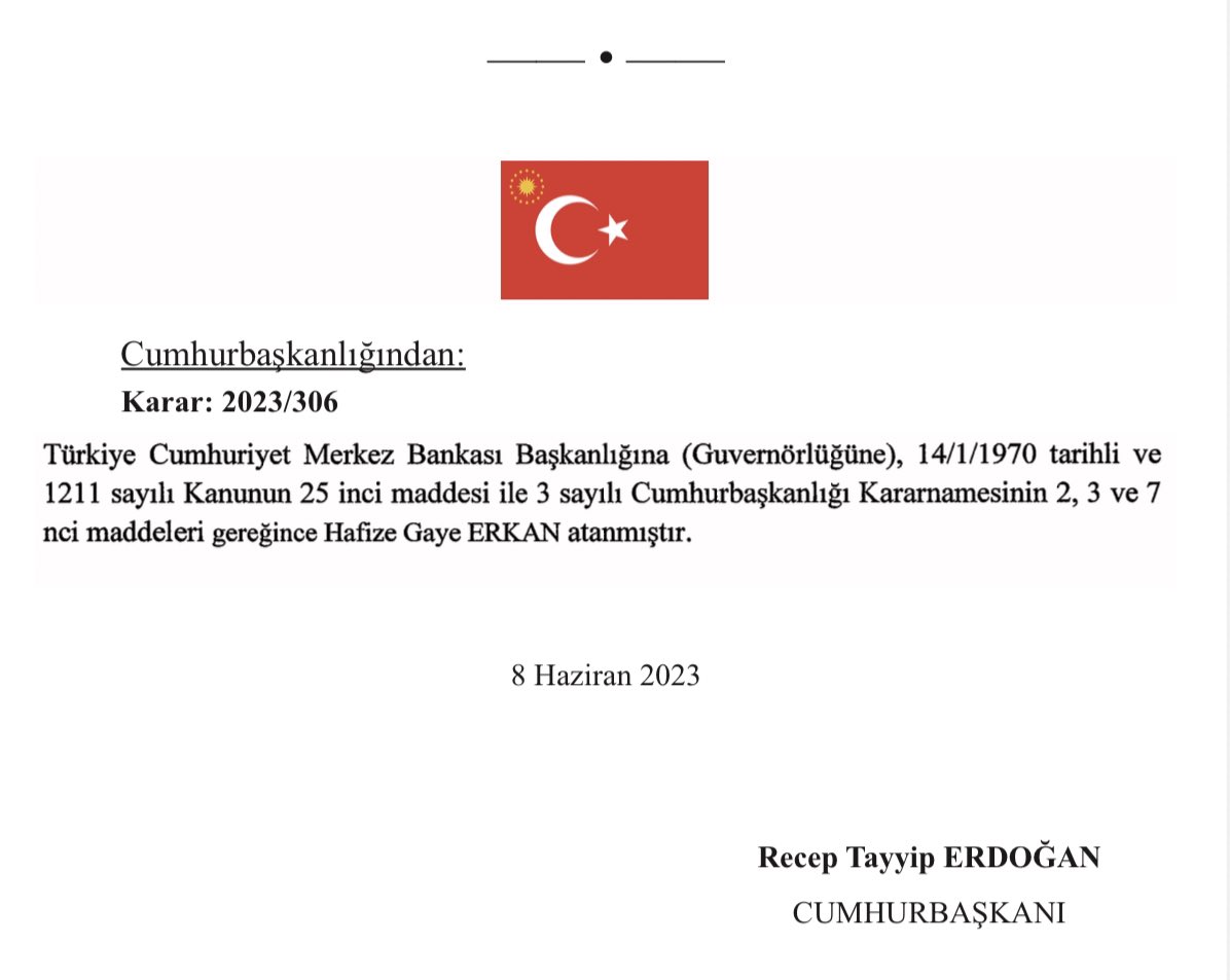 Mehmet Şimşəkin (yeni maliyyə naziri) 5 illik fasilədən sonra yenidən Türkiyədə iqtisadiyyat idarəçiliyinə keçməsilə Türkiyə Cümhuriyyəti Mərkəzi Bankına gözlənilən təyinat reallaşıb.
