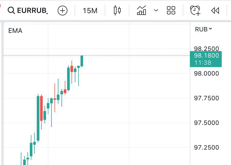 Avro 98 rubldan yuxarı ticarət olunur.