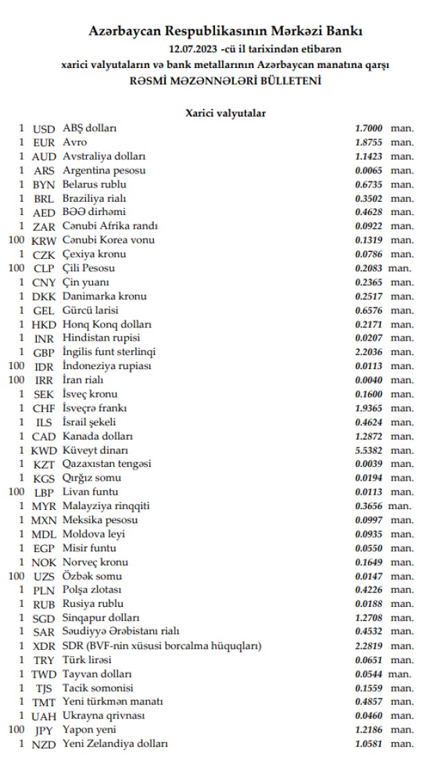 məzənnələrrəsmi azn məzənnə bank mərkəzi məzənnə