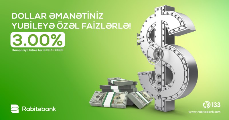 Belə ki, Rabitəbankda vəsaitlərinizi rahat və təhlükəsiz şəkildə artırmaq üçün Manat əmanətlərinə müştərilər 11.30% ilə əlavə gəlir qazana bilərlər. “Universal Əmanət” kampaniyasına özəl dollar əmanətinin faiz dərəcəsi isə 3%-ə dəyişdirildi.