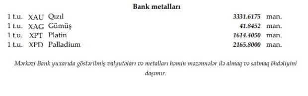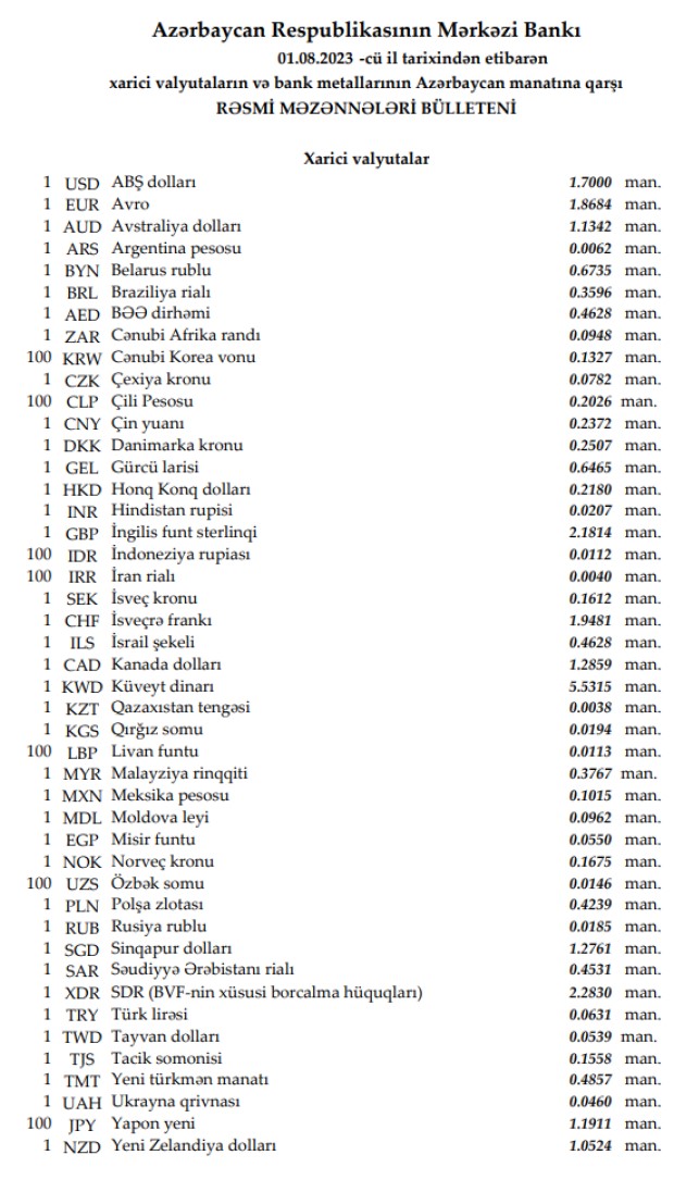 Rəsmi məzənnələr açıqlandı