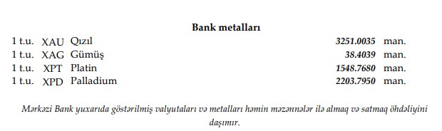 Rəsmi məzənnələr açıqlandı