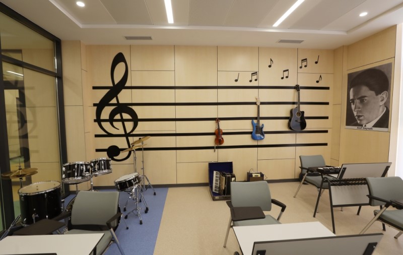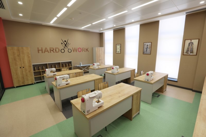 Daha sonra dövlət başçılarına və xanımlarına məktəbdə yaradılan şərait barədə məlumat verilib.