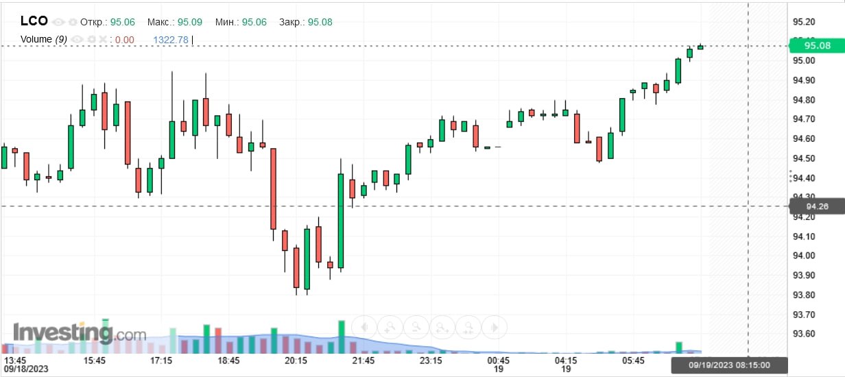 Londonun ICE birjasında Brent markalı neftin noyabr fyuçerslərinin qiyməti 2022-ci il noyabrın 15-dən bəri ilk dəfə 95 dollar/barel keçib.Brent neftinin qiyməti 2022-ci il noyabrın 15-dən bəri ilk dəfə olaraq bir barel üçün 95 dolları ötüb.