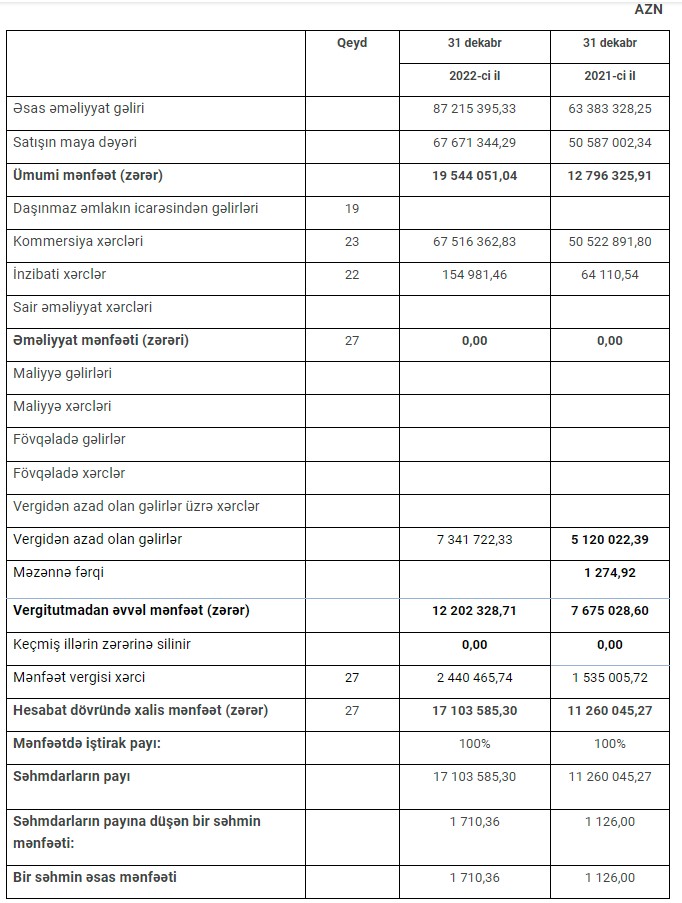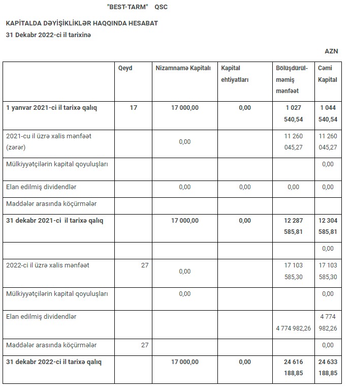 2021 və 2022-ci illərin nəticələrinə əsasən xalis mənfəətdən təsisçilərə 4 milyon 774 min 982 manat divident ödənilib.