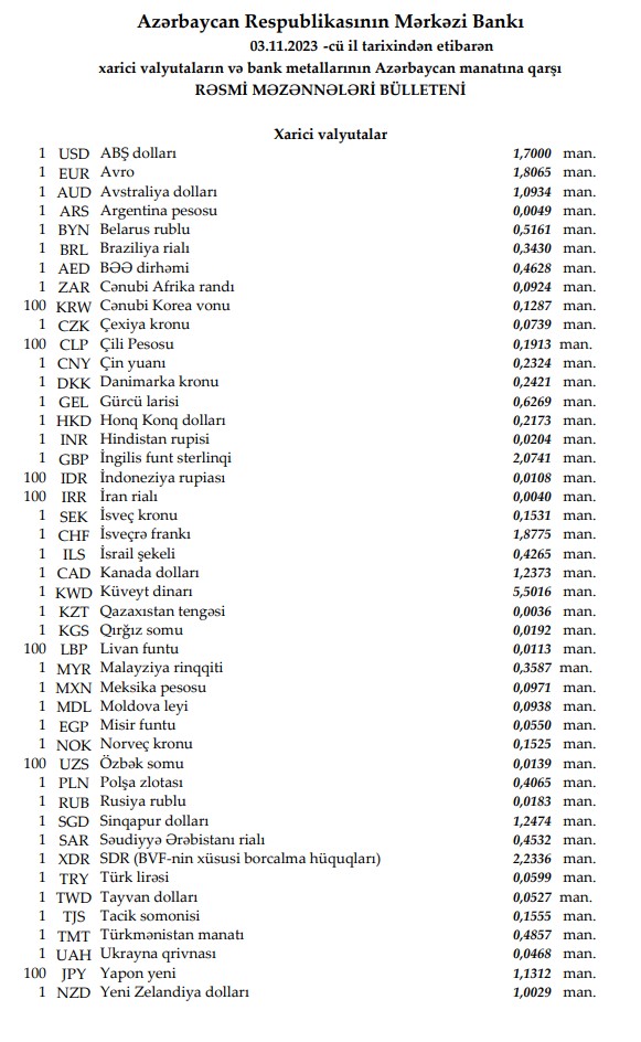 Dolların sabah üçün rəsmi məzənnəsi müəyyən olunub