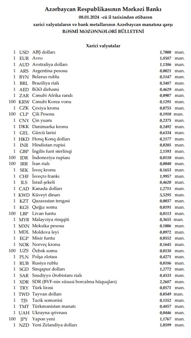 Dolların sabah üçün rəsmi məzənnəsi müəyyən olunub.