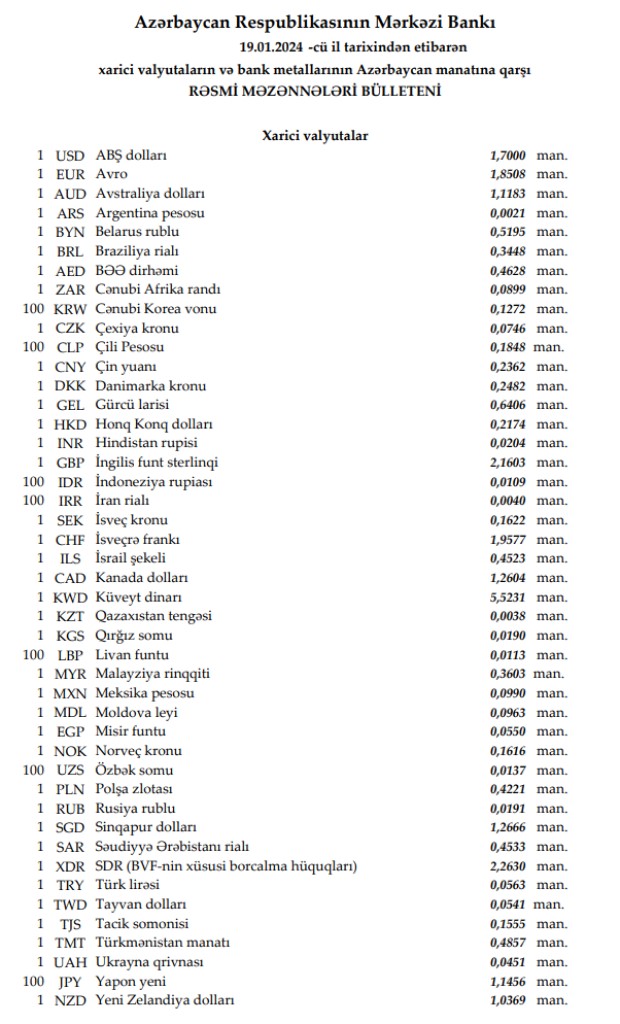 Dolların sabah üçün rəsmi məzənnəsi müəyyən olunub