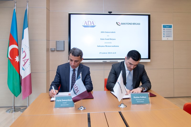 Birjanın yaydığı məlumatda bildirilir ki, sənədi Bakı Fond Birjasının İdarə Heyətinin sədri Ruslan Xəlilov və ADA Universitetinin prorektoru, eləcə də İnkişaf və Diplomatiya İnstitutunun direktoru Fariz İsmayılzadə imzalayıblar.