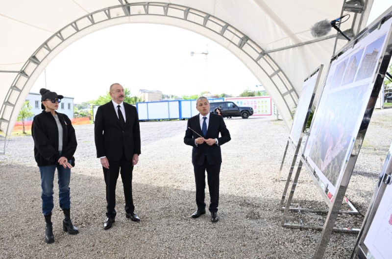 Azərbaycan Respublikasının Prezidenti İlham Əliyev və birinci xanım Mehriban Əliyeva Şuşada inşa ediləcək üçüncü yaşayış kompleksinin təməlqoyma mərasimində iştirak ediblər.