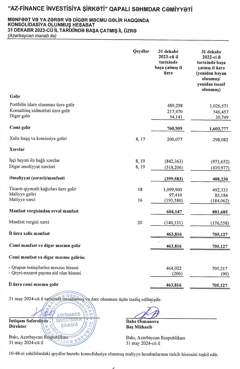 “AzFinance İnvestisiya Şirkəti” QSC 2023-cü ili 464 min manat xalis mənfəət ilə başa vurub. Şirkət 2022-ci ili 705 min manat xalis mənfəət ilə bğalmışdı. Beləliklə, ötən il “AzFinance İnvestisiya Şirkəti”nin xalis mənfəəti 34,2% azalıb.