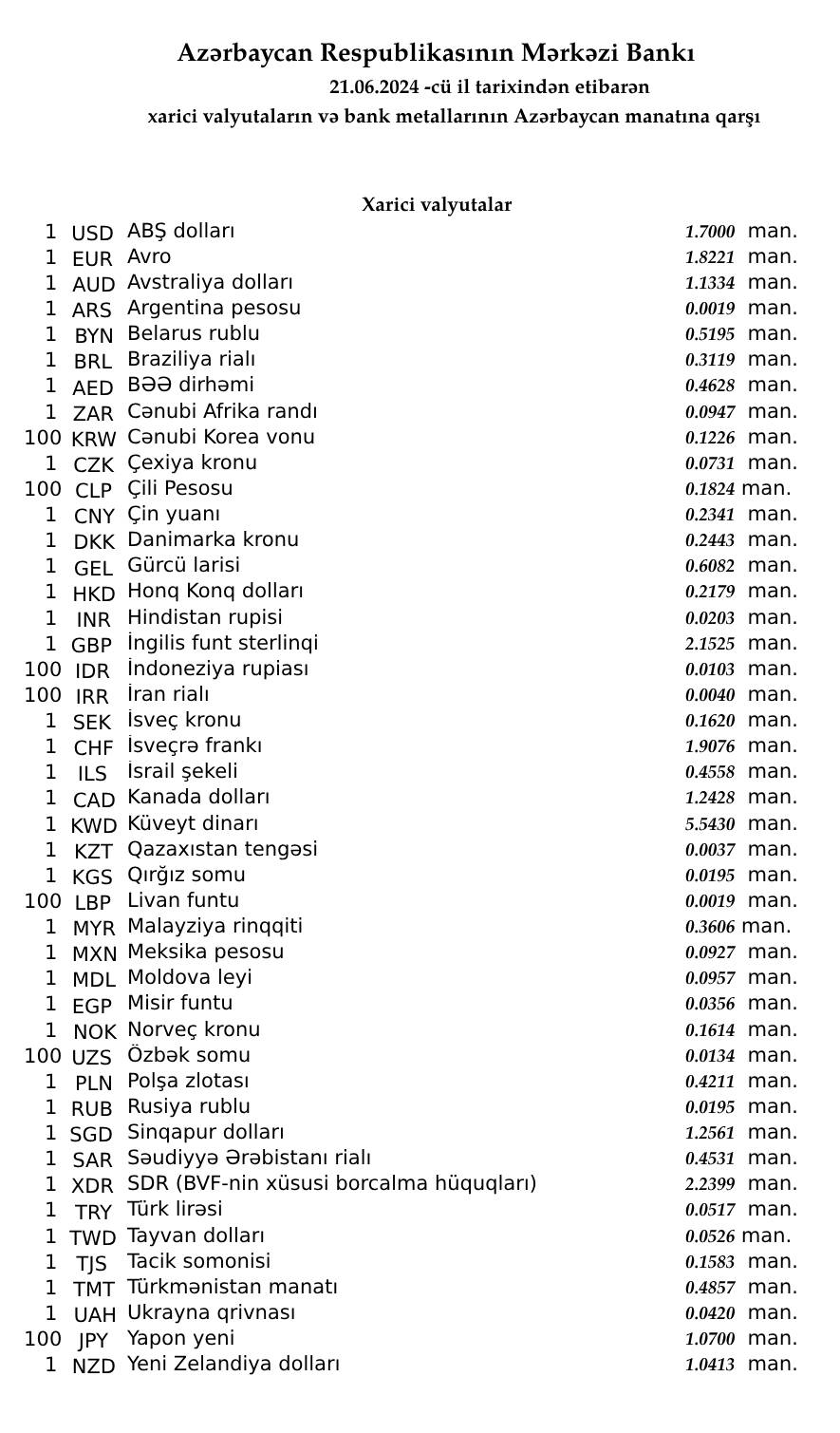 Rəsmi məzənnələr açıqlandı