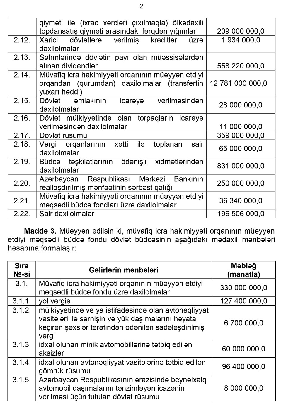 Qanuna əsasən, məcburi dövlət sosial sığorta haqları üzrə gəlir 5 288 135 400,0 manatdan 5 478 135 400,0 manata qaldırılıb.