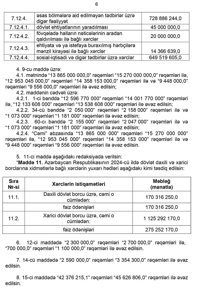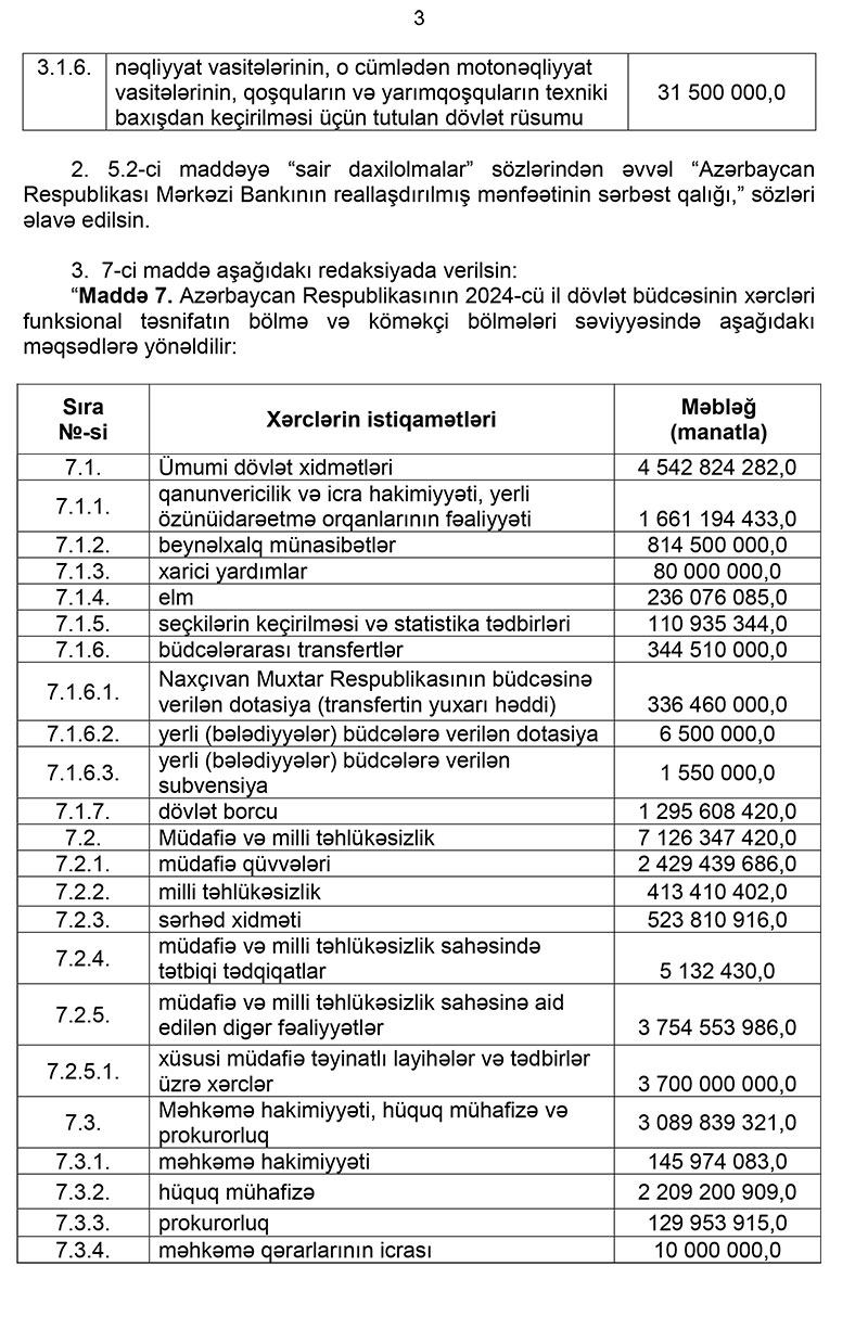 Prezident İlham Əliyev “Azərbaycan Respublikasının 2024-cü il dövlət büdcəsi haqqında” Azərbaycan Respublikasının Qanununda dəyişiklik edilməsi barədə” qanunu təsdiqləyib.