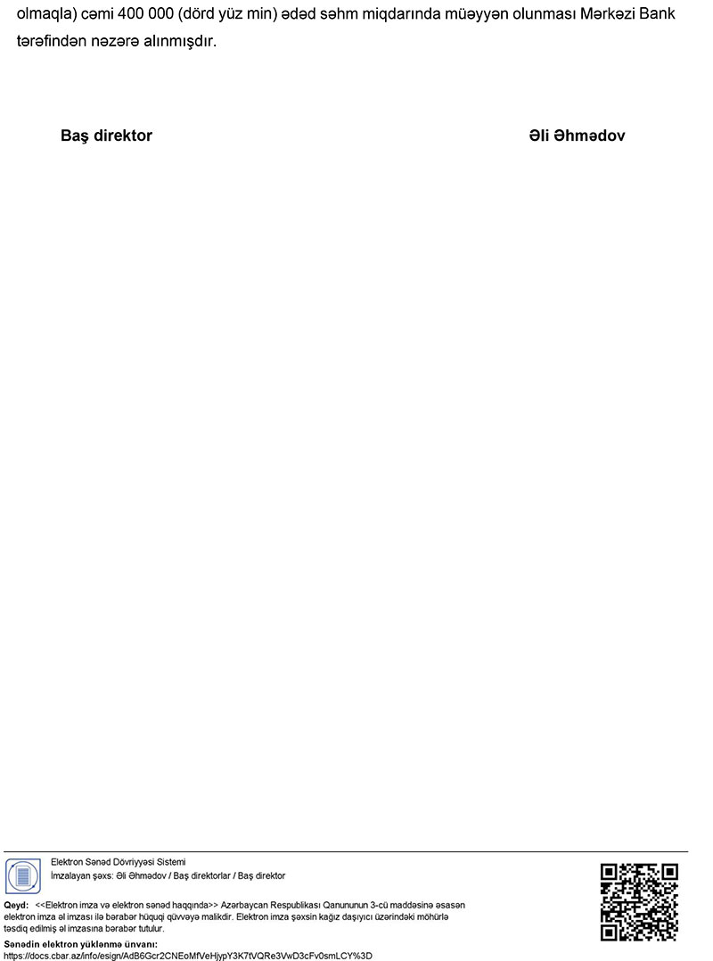 Marja.az xəbər verir ki, dəyişiliyə əsasən, 1-ci mərhələdə hər bir investor üzrə səhmlərə abunə yazılışının məbləği (üstünlük hüququ ilə alınan səhmlər istisna olmaqla) 325 000 ədəd artırılaraq 400 000 ədədə çatdırılıb. Əvvəlki qərar ilə səhmlərə abunə yazılışının məbləği üstünlük hüququ ilə alınan səhmlər istisna olmaqla hər bir investor üzrə maksimum 75 000 ədəd, minimum isə 100 ədəd səhm miqdarında müəyyən edilmişdi.