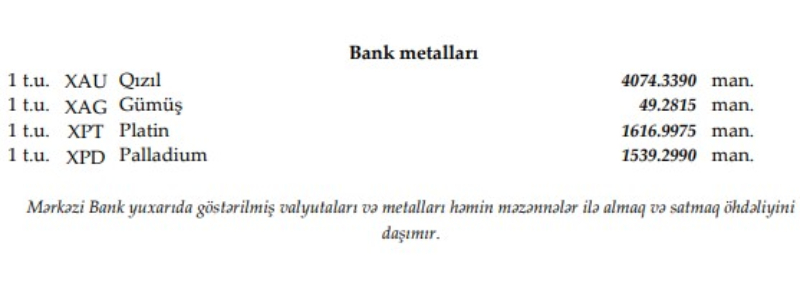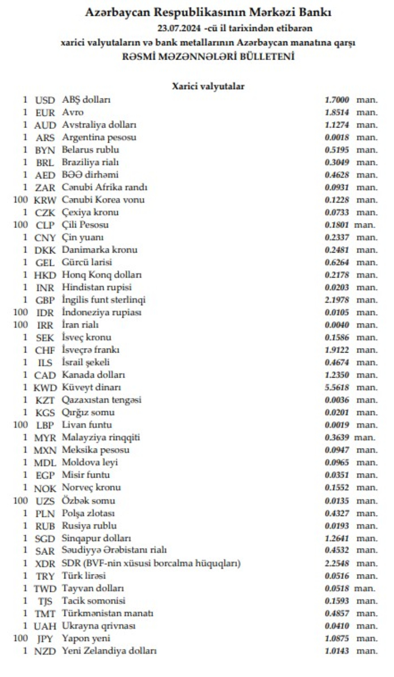 Mərkəzi Bank 2026-cı ilin ilk iş gününün rəsmi məzənnəsini açıqladı