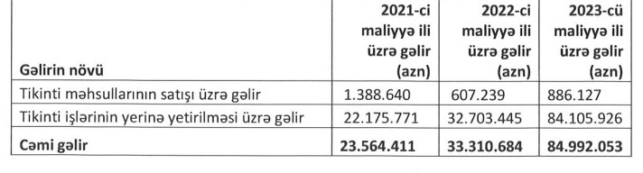 İnşaat şirkəti 85 milyon manat gəlir, 13,6 milyon manat xalis mənfəət əldə edib