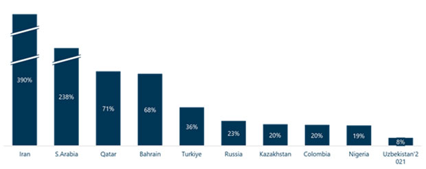 Listinq edilmiş yerli şirkətlərin bazar kapitallaşması (ÜDM-in faizi; 2022)