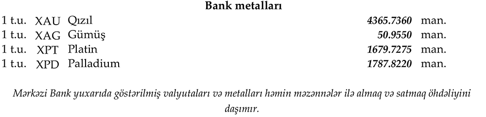 Rəsmi məzənnələr açıqlandı