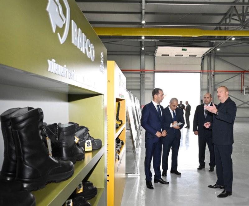 Dövlətimizin başçısına məlumat verilib ki, “BAFCO İnvest” MMC 2023-cü ilin mart ayında Ağdam Sənaye Parkının rezidenti kimi qeydiyyata alınıb. Sənaye parkının 2,5 hektar ərazisində Almaniyanın qabaqcıl texnologiyalarının tətbiqi ilə müxtəlif təyinatlı çəkmə, tikintidə istifadə üçün nəzərdə tutulan, dəmir ucluqlu və altlıqlı təhlükəsizlik ayaqqabılarının istehsalı həyata keçirilir.