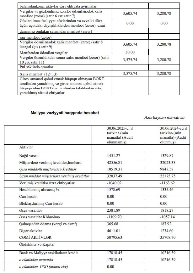 BOKT “İnternational” ASC 2025-ci ilin 1-ci yarısını (yanvar-iyun) 3 milyon 576 min manat xalis mənfəət ilə başa vurub. Kredit təşkilatı ötən ilin eyni dövrünü 3 milyon 281 manat xalis mənfəət ilə bağlamışdı. Beləliklə, BOKT “İnternational”ın 6 aylıq xalis mənfəəti 295 min manat və ya 9% artıb.