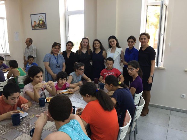 Sonda uşaqlarla xatirə şəkili çəkilib.