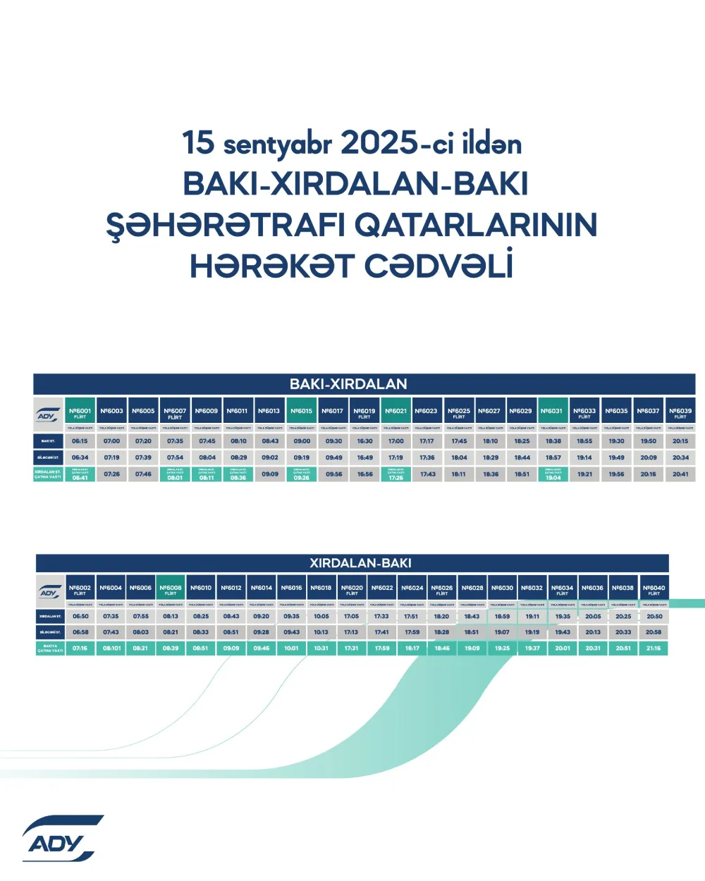 Qeyd edək ki, “Bakı şəhərində və ətraf ərazilərdə nəqliyyat infrastrukturunun təkmilləşdirilməsinə dair 2025–2030-cu illər üçün Dövlət Proqramı”nın təsdiq edilməsi haqqında Azərbaycan Respublikası Prezidentinin 30 yanvar 2025-ci il tarixli, 456 nömrəli Sərəncamı ilə təsdiq edilmiş “Dövlət Proqramının həyata keçirilməsinə dair Tədbirlər Planı”nın icrası çərçivəsində Xırdalan şəhərinin M-1 Bakı−Quba Rusiya Federasiyası ilə dövlət sərhədi və M-4 Bakı−Şamaxı−Yevlax avtomobil yolları ilə əlaqələndirməsini təmin etmək məqsədilə Xırdalan–Güzdək sahəsində dəmiryol xətlərinin altından yeni avtomobil yolu keçidinin inşasına başlanacaq. Bu səbəbdən ADY-nin Xırdalan–Sumqayıt–Xırdalan xətti üzrə sərnişin qatarlarının fəaliyyəti müvəqqəti olaraq dayandırılacaq, qatarlar Bakı–Biləcəri–Xırdalan–Bakı xətti ilə hərəkət edəcək.