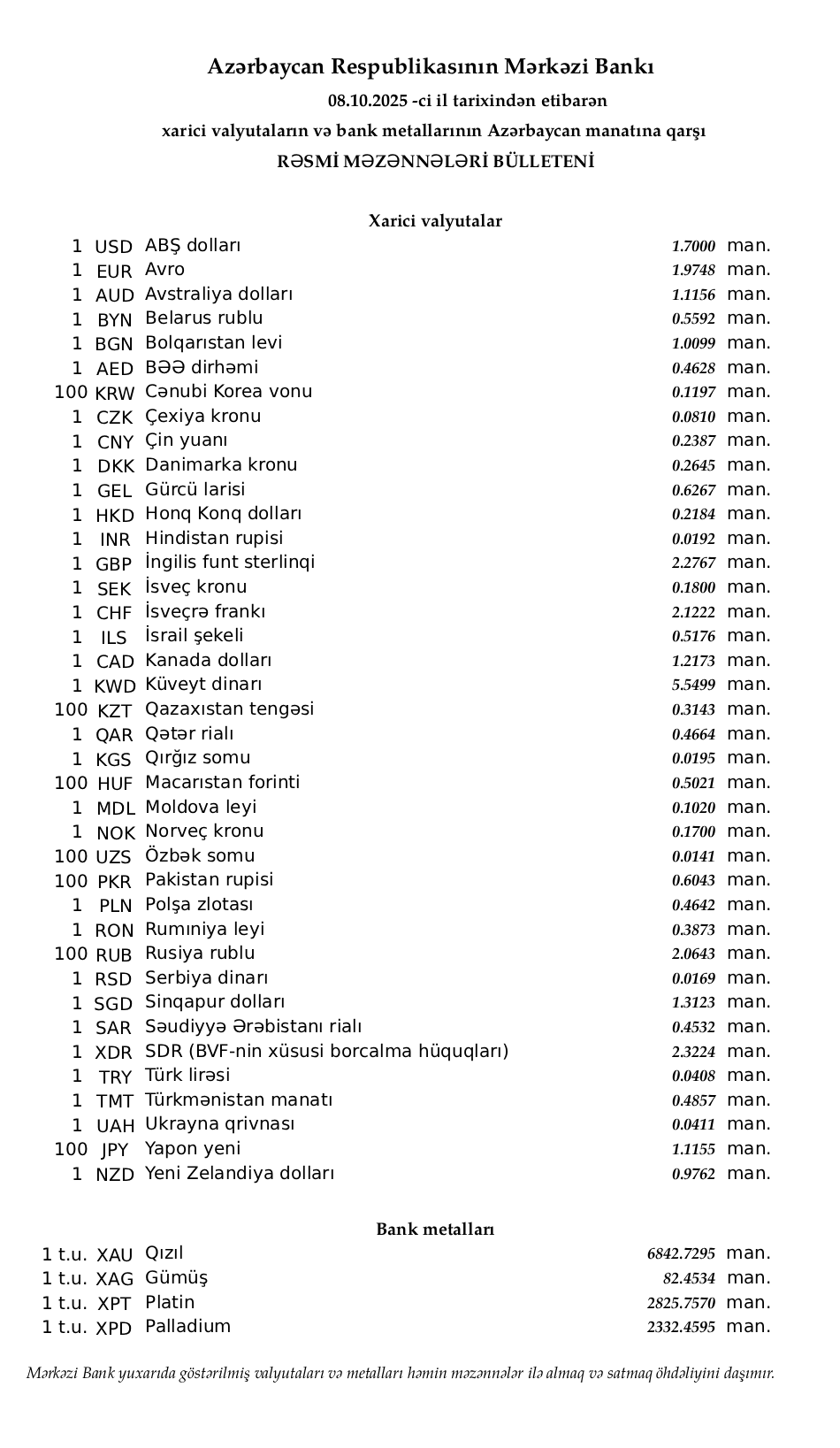 Dolların sabah üçün rəsmi məzənnəsi müəyyən olunub