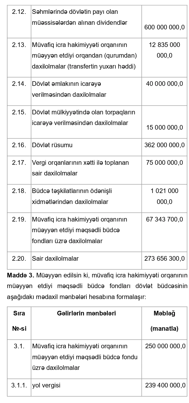 Azərbaycan Respublikasının 2026-cı il icmal büdcəsinin xərclərinin yuxarı həddinin məbləği 48 milyard 839 milyon 322,6 min manat, 2026-cı il icmal büdcəsi kəsirinin yuxarı həddinin məbləği 16 milyard 902 milyon 226,6 min manat məbləğində nəzərdə tutulur.
