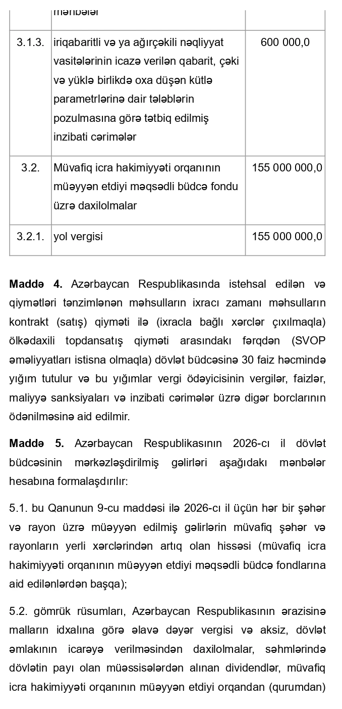 Azərbaycan Respublikasının 2026-cı il dövlət büdcəsi haqqında qanun layihəsi ictimai müzakirəyə çıxarılıb.