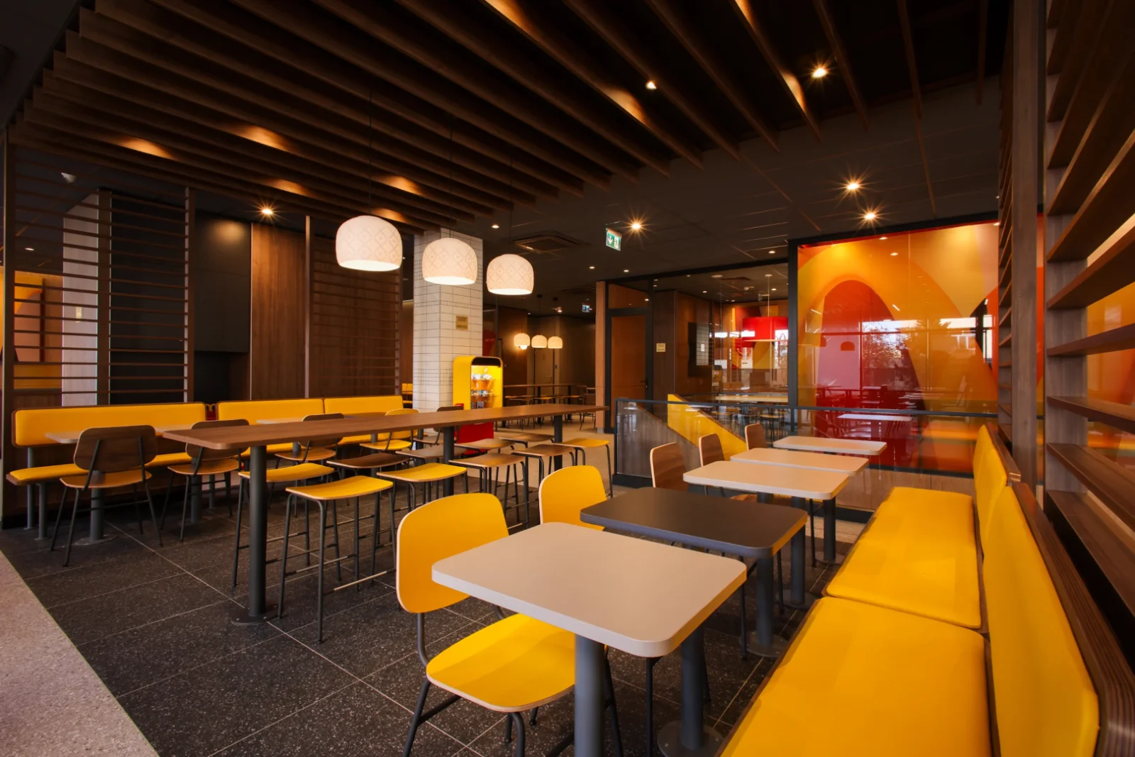 Restoran “MakAvto” zonası olan ayrıca bir binada yerləşir ki, bu da qonaqlara sifarişlərini daha sürətli və rahat şəkildə almağa imkan verir. İnteryer “A Touch of Archery” konsepsiyasında işlənib hazırlanıb. Burada zərif xətlərin və dinamik çalarların ahəngi yüngül və rahat atmosfer yaradır.