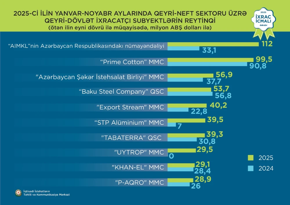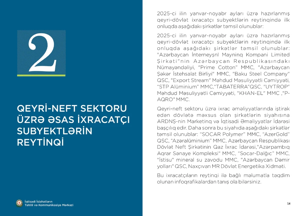 İqtisadi İslahatların Təhlili və Kommunikasiya Mərkəzi (İİTKM) “İxrac icmalı”nın dekabr sayını təqdim edib.