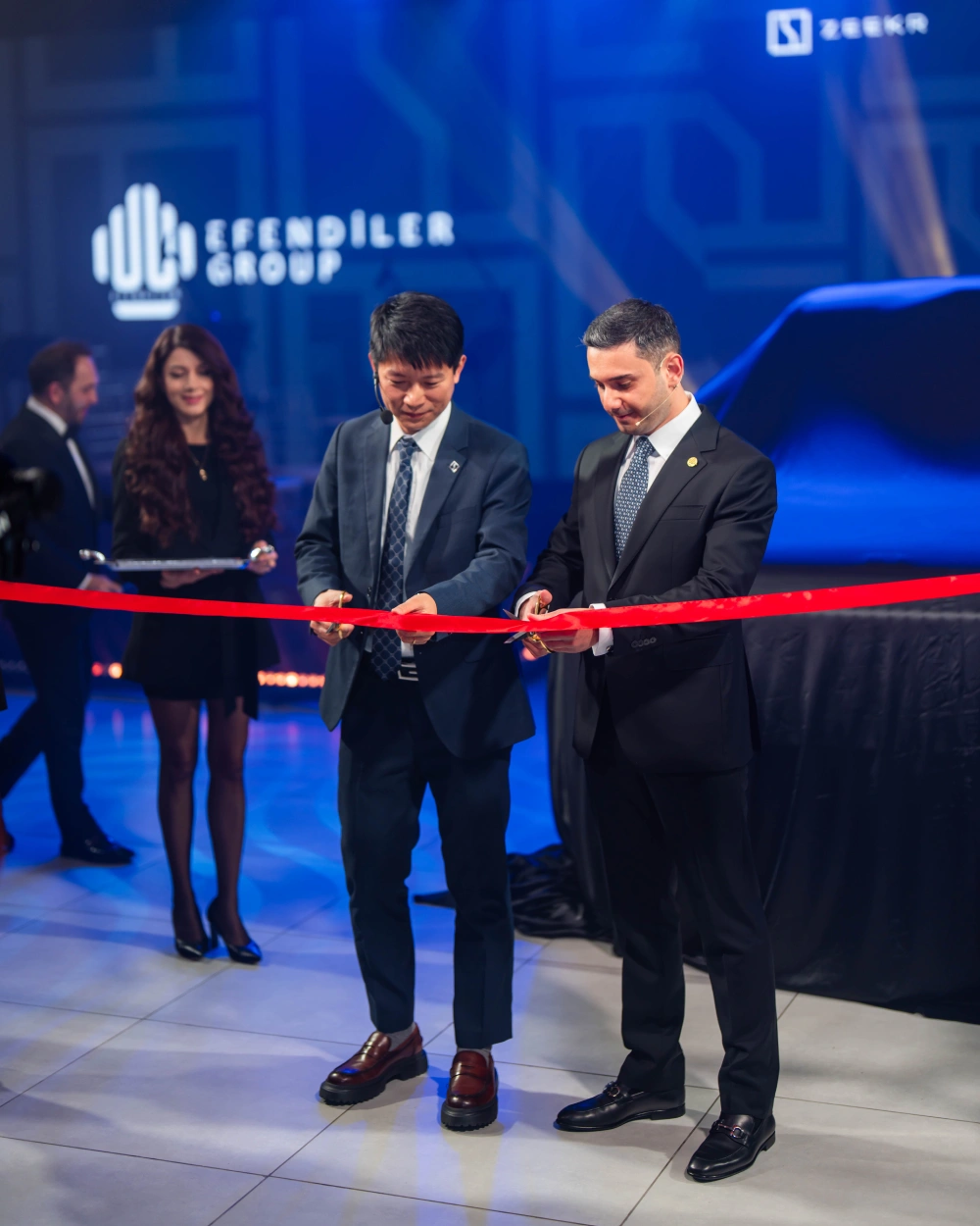Açılış mərasimində simvolik qızıl lent Efendiler Group-un icraçı direktoru Amal Əlili və ZEEKR brendinin regional direktoru Kai Li tərəfindən kəsilib.