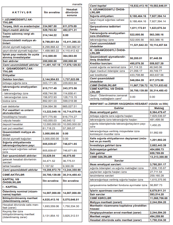 “AZSIĞORTA” ASC-nin  31 dekabr 2025-ci il tarixinə mühasibat balansı