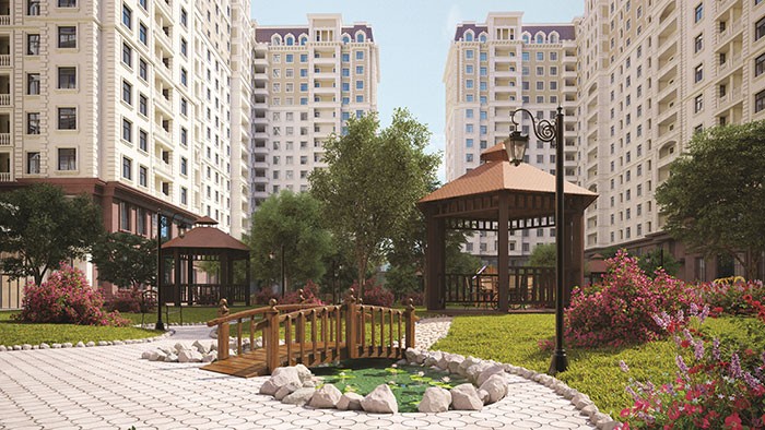 Dörd binanın həyəti kənardan girişlərə qapadılaraq yalnız sakinlərin istirahəti üçün aktiv zona kimi nəzərdə tutulub. Burada yaşıllıq, ağaclar, xüsusi qaçış və velosiped zolaqları, voleybol və basketbol meydançası, tennis kortu, uşaqlar üçün oyun meydançaları, velo parkinq əhalinin ixtiyarında olacaq. Kompleksin aşağı mərtəbələrində fəaliyyət göstərəcək kommersiya obyektlərinin belə daxili parka çıxışı olmayacaq.