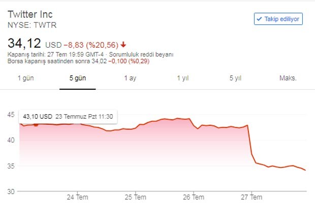 Twitter-in səhmlərindəki kəskin ucuzlaşma, şirkətin cümə günü açıqlanan balansında aylıq istifadəçi sayının azaldığının qeyd edilməsinin ardından baş verib.