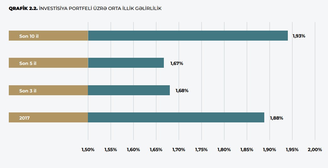 Azərbaycan Respublikasının Dövlət Neft Fondunun (ARDNF) investisiya portfeli üzrə orta illik gəlirlilik 2017-ci ildə 1.88% təşkil edib.