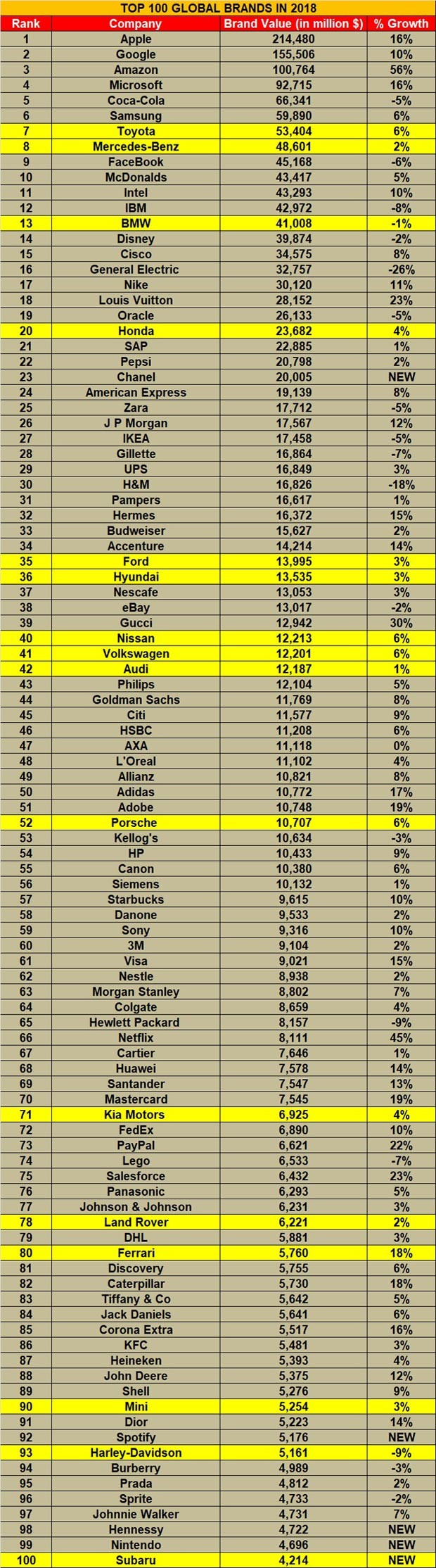 Dünyanın ən nüfuzlu müstəqil araşdırma mərkəzlərindən biri olan "İnterbrand"ın hazırladığı "Ən Dəyərli 100 Qlobal Marka" reytinqini açıqlayıb.