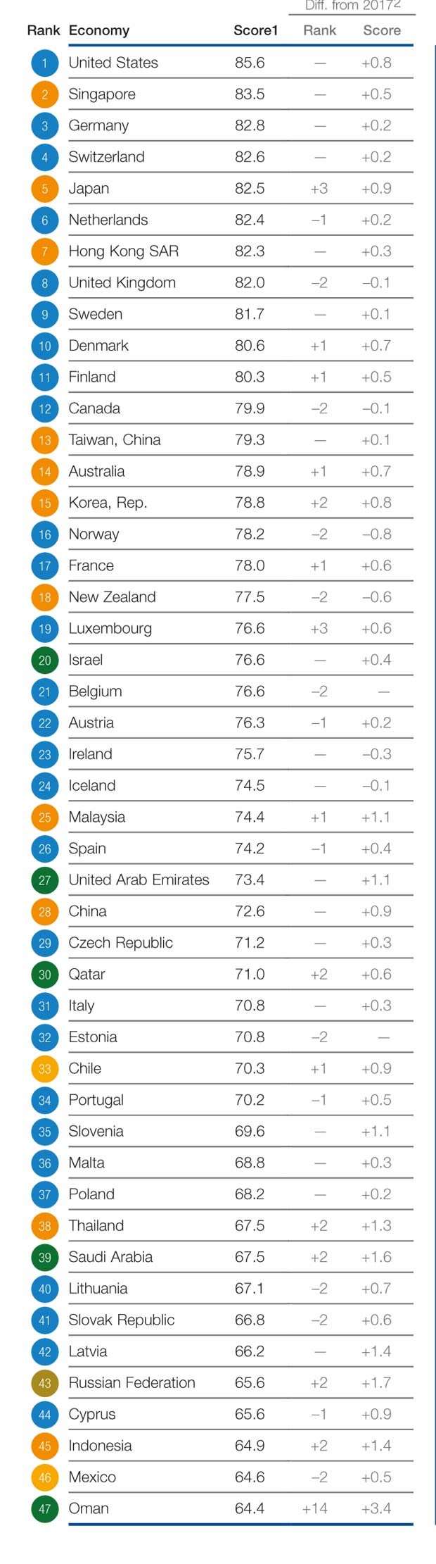 Yaponiya qlobal rəqabətlilik reytinqində bu il 3 pillə yüksələrək 82,5 bəndlə 5-inci yerə yüksəlib, Hollandiya isə 82,4 bəndlə 6-cı yerə geriləyib.