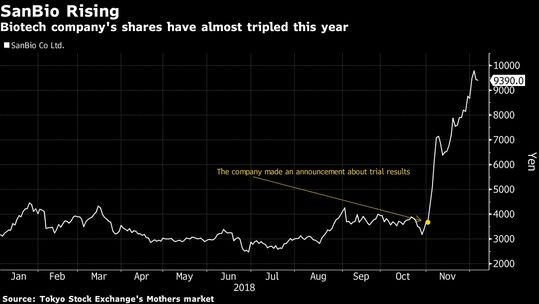 "Marja" xəbər verir ki, "SanBio"nun təcrübəsi ilə bağlı xəbərlərin ardından şirkətin səhmləri 155 faiz bahalaşıb və "Tokyo Stock Exchange Mother's" bazarında ən dəyərli şirkət olub.