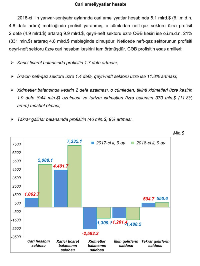 Azərbaycanın 9 aylıq tədiyyə balansı açıqlanıb