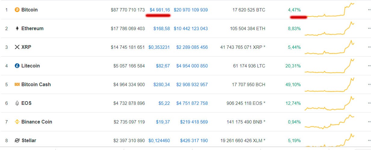 "Bitcoin"in qiyməti 5 min dollar səviyyəsini yeniləyib