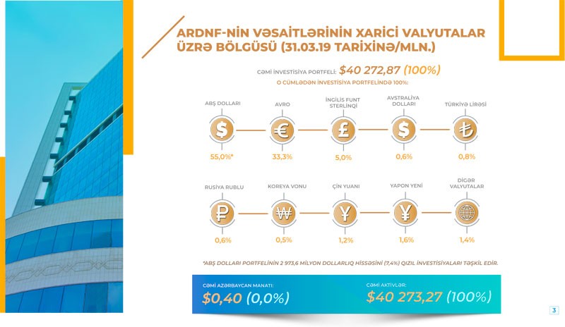 1999-cu ildə yaradılan bu il 20 illiyini qeyd edən Azərbaycan Respublikası Dövlət Neft Fondunun (ARDNF) aktivləri ARDNF-nin tarixində ilk dəfə olaraq 40 milyard ABŞ dolları həcmini keçmişdir.