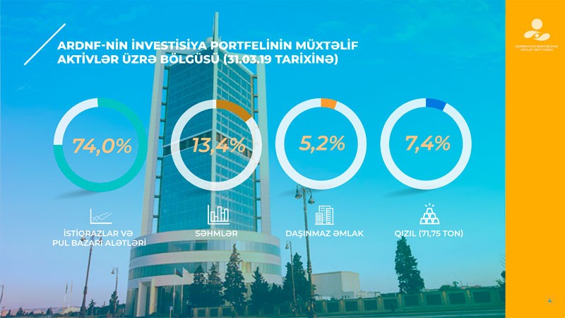 2019-cu ilin 31 mart tarixinə Fondun aktivləri 2019-cu ilin əvvəlinə (38 milyard 515,2 milyon ABŞ dolları) nisbətən 4,56% artaraq 40 milyard 273,3 milyon ABŞ dollarına bərabər olmuşdur. Aktivlərin artımı Fondun büdcə gəlirləri, o cümlədən vəsaitlərin idarə edilməsindən əldə edilən gəlirlər hesabına olmuşdur