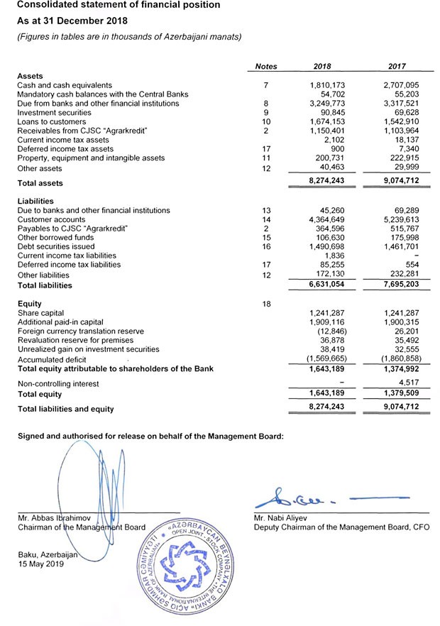 Azərbaycanın ən böyük bankı 2018-in audit hesabatını dərc etdi
